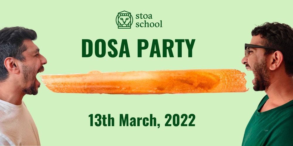 But this message isn’t about Stoa. It’s about the FREE DOSA PARTY that Stoa is throwing on 13th March in Bengaluru!